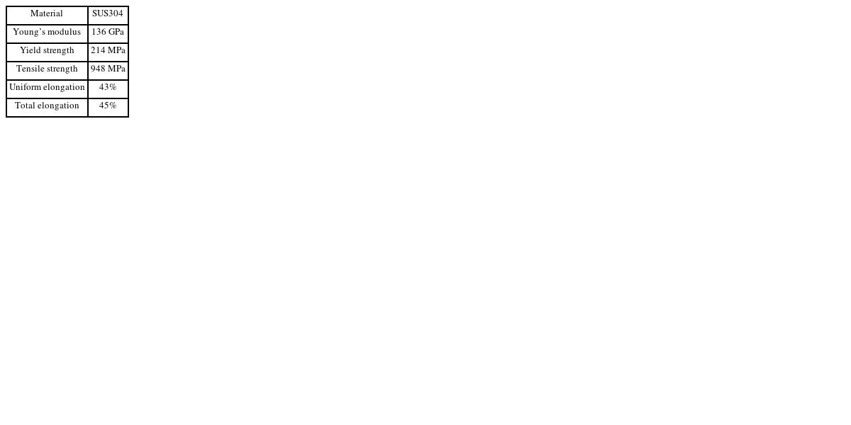 Table 1Material properties of SUS304