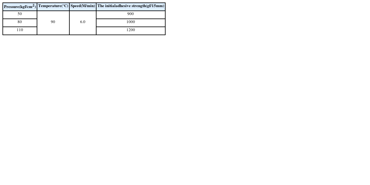 Table 2 The results of the initial adhesive between aluminum and CPP film under the different conditions of the lamination pressure
