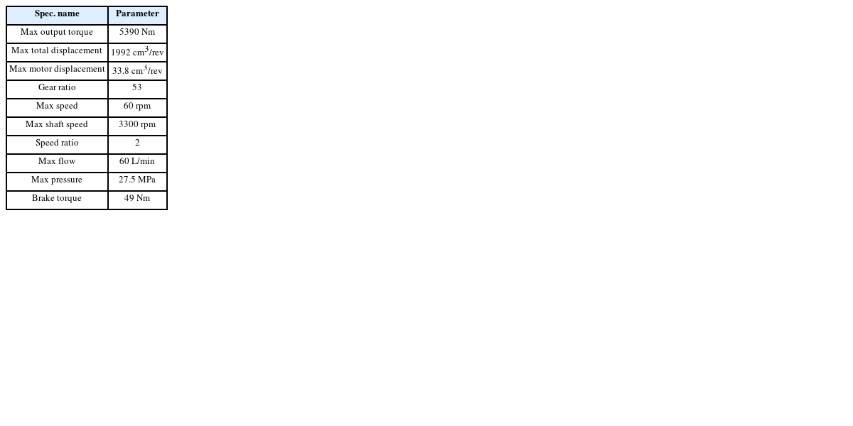 Table 2 Specifications of 2 ton planetary gear drive reducer