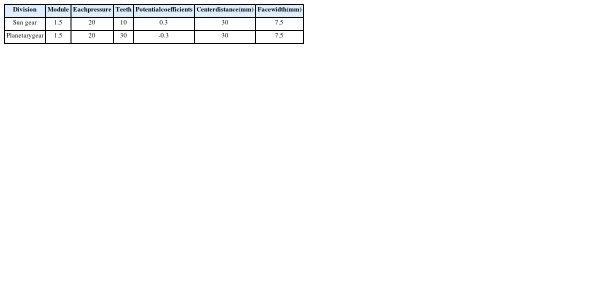 Fig. 5는 기어 설계프로그램인 HEXGON을 활용하여 치형을 작도하여 표현한 형상을 나타내었으며, 선기어와 유성기어의 모듈, 압력각, 잇수, 전위계수, 중심거리, 치폭 값을