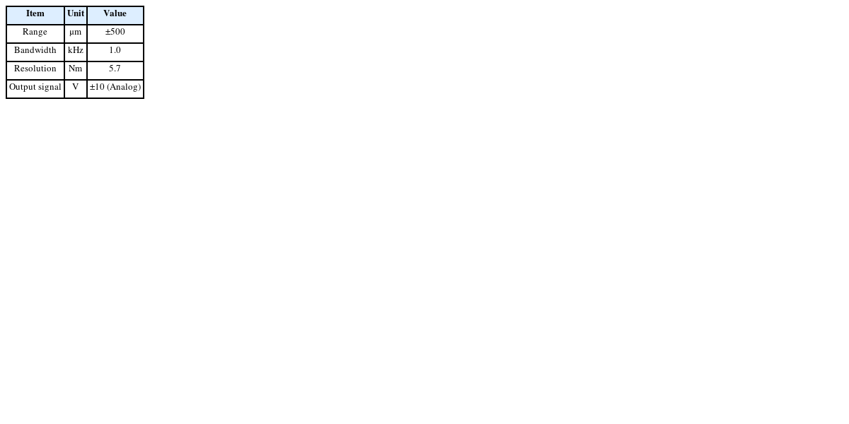 Table 2 Specifications of non-contacting displacement sensor