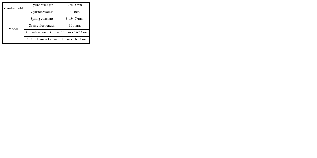 11-13 Table 2는 설계된모델의 주요 치수이다. 맨드렐 몰드, 기존의 스틸 심클램프 그리고 복합 심클램프의 시뮬레이션을 진행하였다. 복합 심클램프의 고무 부분은, 고무의 변형률이 0.001 정도인 미소 변화이므로, 탄성 변형 거동으로 가정하였다.