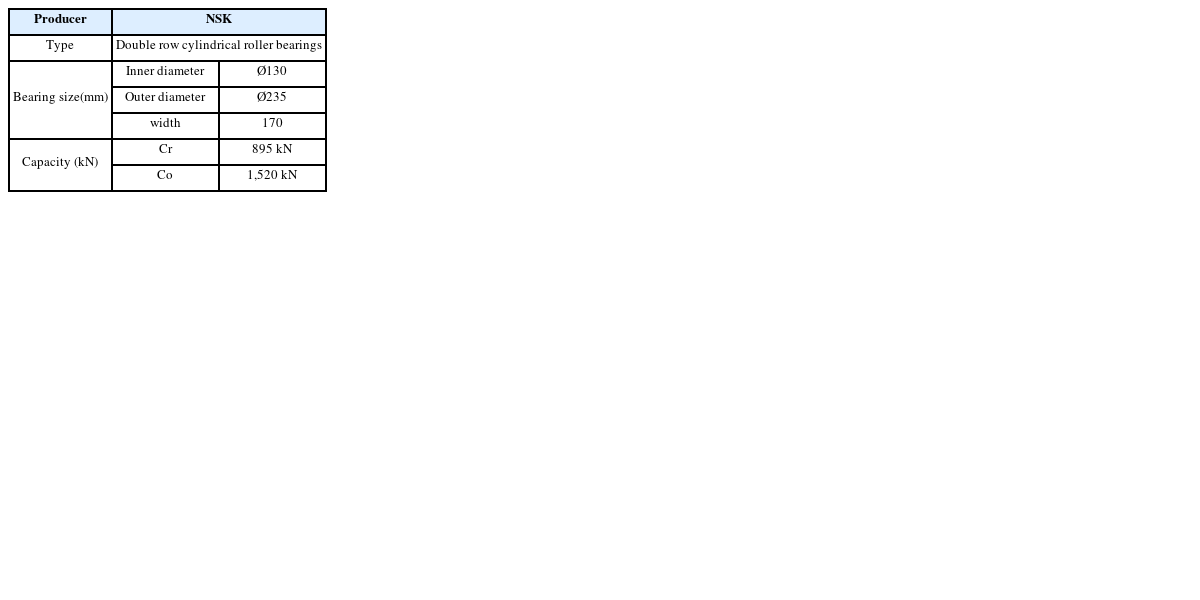 본 논문의 수명시험에는 현재 도시철도 분당선과 과천선에서 사용하고 있는 NSK사의 복렬 원통 롤러 베어링인 130JRT08 차축베어링을 대상으로 하였으며,