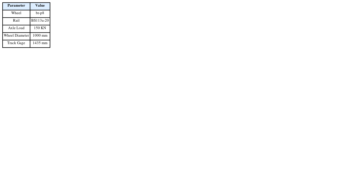 Table 1에 나타낸 차륜의 외경, 축중, 레일 궤간 등을 입력으로 필요로 한다.