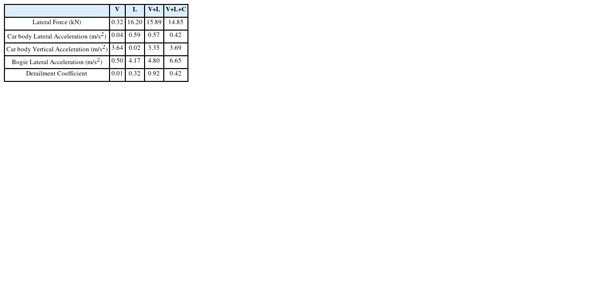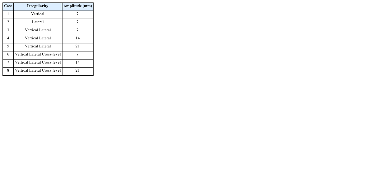 Table 4Combination effect of irregularity (Wavelength: 20 m, Amplitude: 21 mm)