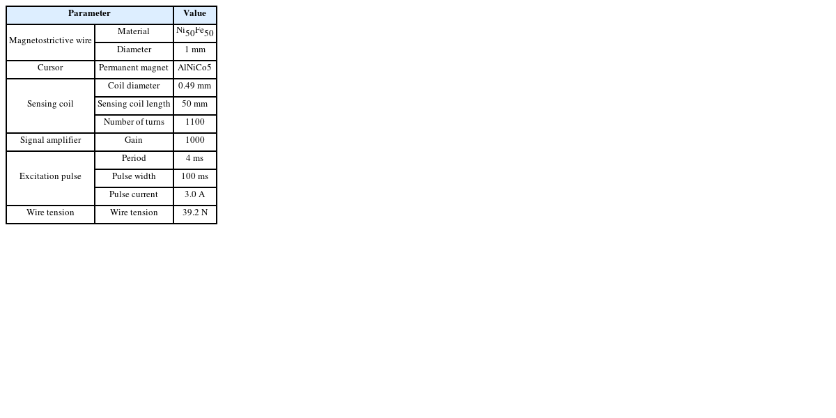 Fig. 6에 나타나있다. 실험에 사용된 자기변형 와이어는 주로 자기변형 제어봉 위치지시기에 적용되는 재질인 Ni-Span-C와 Ni