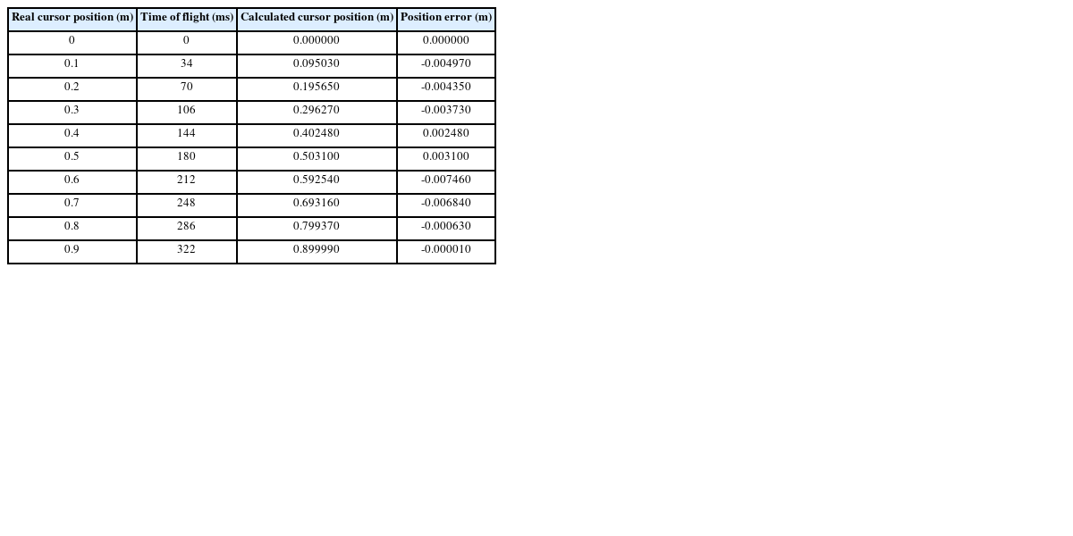 Table 1과 같다. 성능 검증을 위한 실험은 크게 두 가지로 이루어진다. 먼저 자기변형 제어봉 위치지시기로 타깃의 절대위치를 파악할 수 있는지에 대한 가능성과 위치지시기 자체의 정확도 검증을 위해 영구자석을 100 mm 간격으로 이동시켜가며 이 때의 검출 시간 차이를 통해 영구자석의 위치를 계산하고, 실제 위치와 비교한다. 또 다른 검증 실험은 고온환경에서의 적용가능성을 보기 위해 상온에서부터 최대 500°C까지 온도 변화가 가능한 오븐 내에 자기변형 와이어를 두고 변화를 확인하였다.
