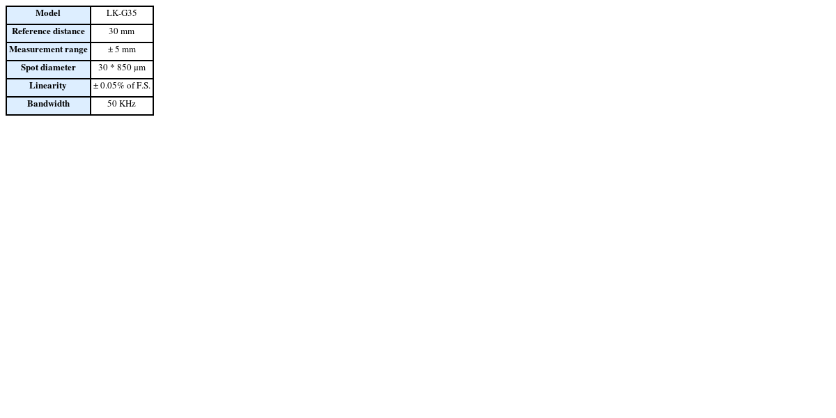 4는 압전구동기, 압전앰프, 레이저 변위 측정기의 제원을 각각 나타낸다.