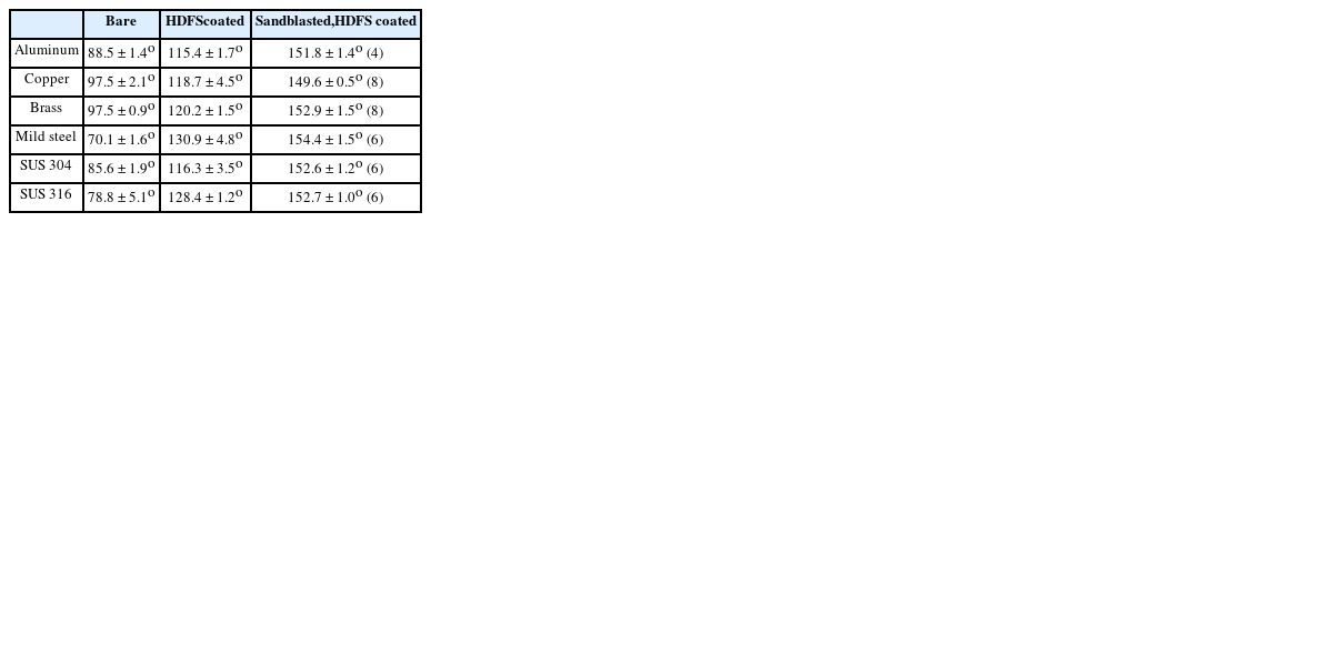 Table 1에 정리하였다. 연마가공을 진행하지 않은 금속표면에 자기조립단분자막 코팅으로 최소 115.4