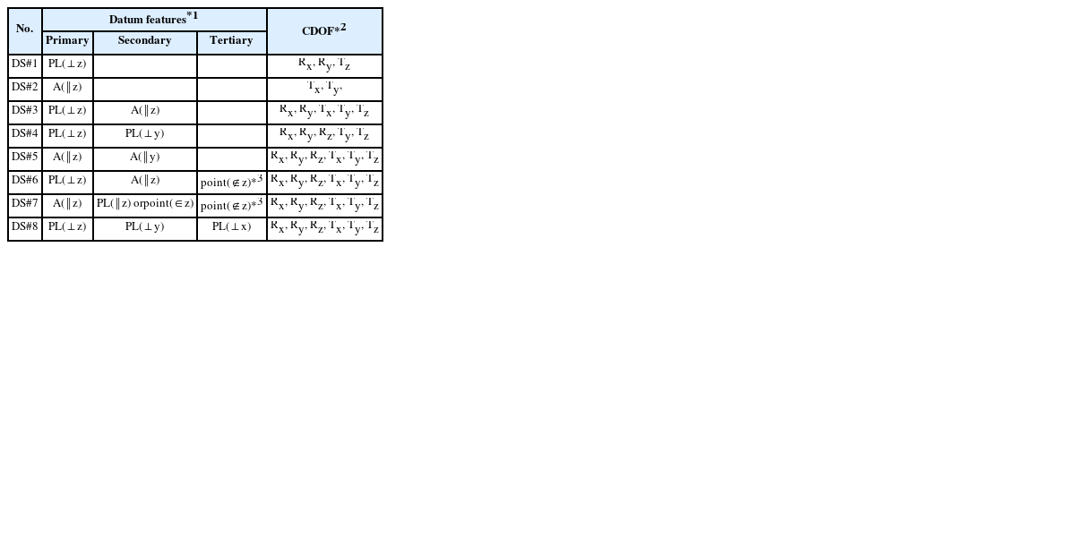 Table 1 Common datum feature sets and corresponding degrees of freedom constrained by them