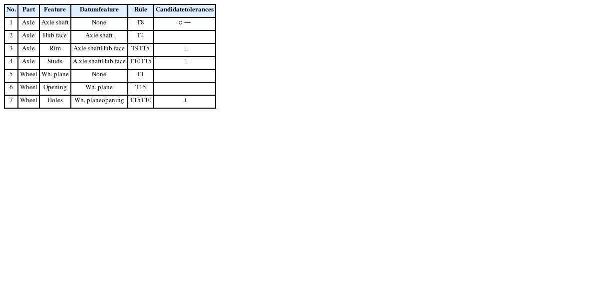 Table 4 Candidates of geometric tolerances for feature of axle and wheel, with the selected ones underlined