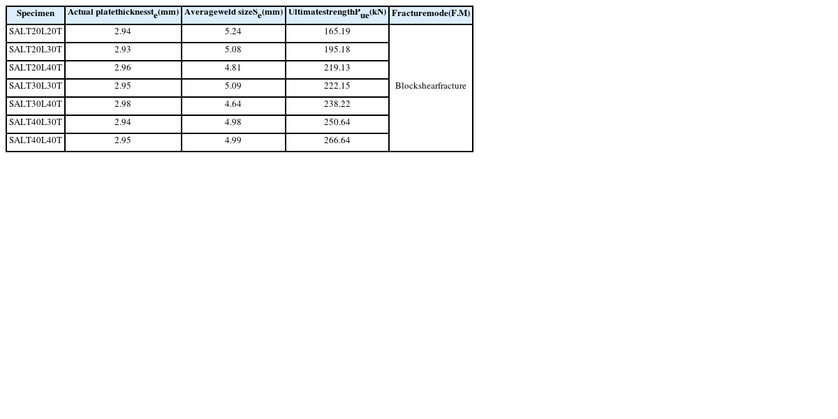 9 provides the design fillet-weld strengths of tensile fracture and shear fracture according to loading directions against welding axis not including block shear strength of welded connections. Recently, experimental studies on the ultimate strength of austenitic stainless steel (STS304, corresponds to ASTM 304L type)