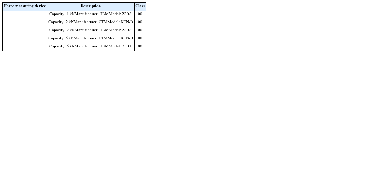 본 연구를 수행하기 위해, 2개의 제조회사인 HBM과 GTM에서 제작된 5개의 힘측정기를 사용하였다. 힘측정기의 종류는 5 kN, 2 kN, 1 kN HBM과 5 kN, 2 kN GTM이다. 그리고 힘측정기의 측정을 위해 한국표준과학연구원의 5 kN, 20 kN 실하중 힘표준기가 사용되었다.