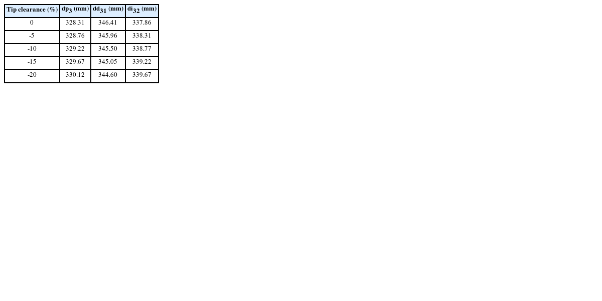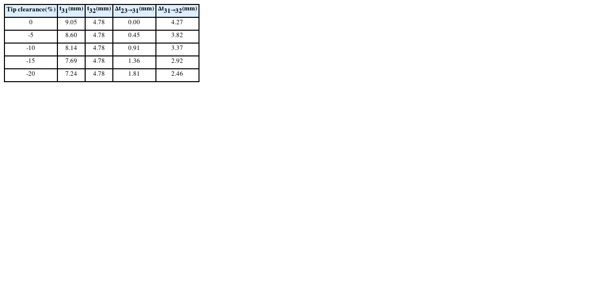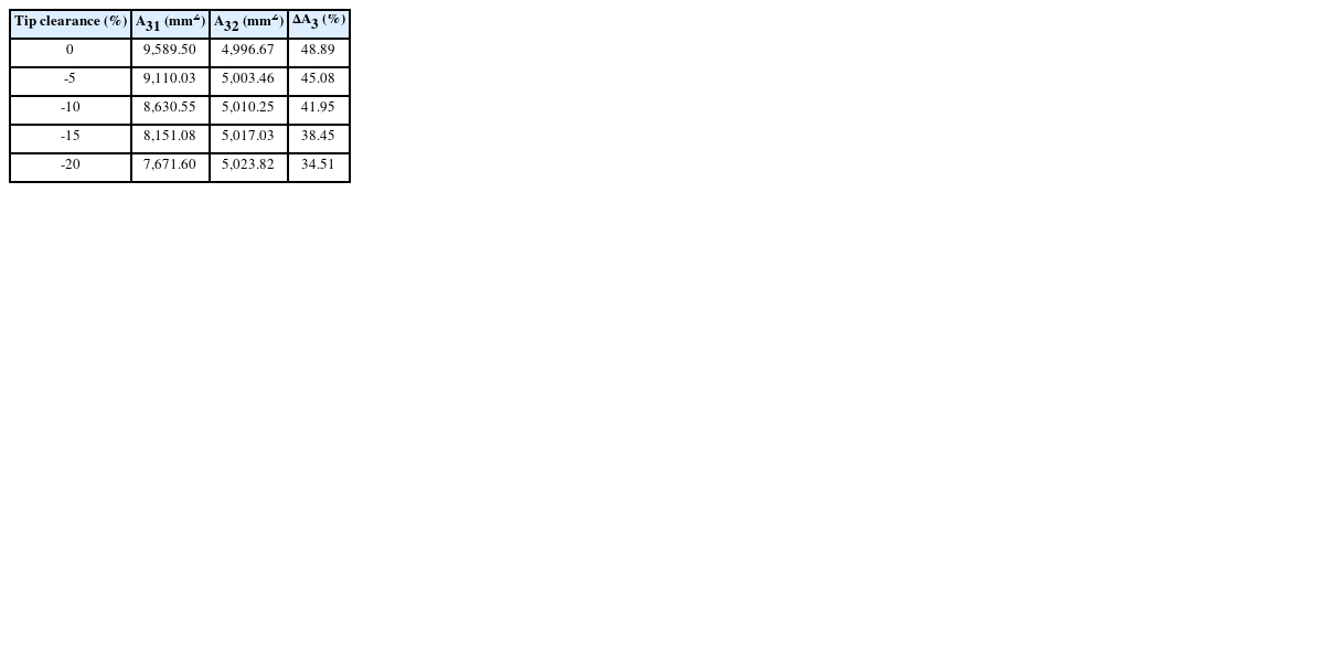 Table 2Reduction ratios of cross sectional areas according to tip clearances of the 3rd stage