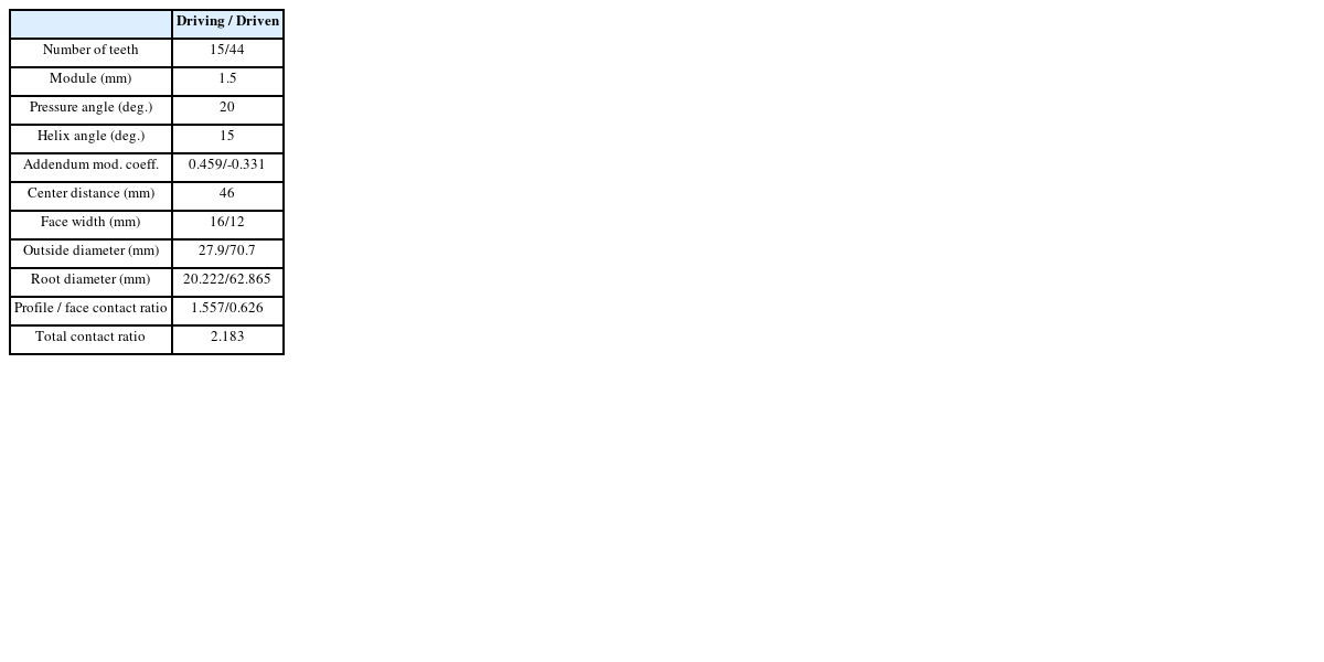 Table 1 is the summary of the specification of the 1st gear pair of the gearbox.