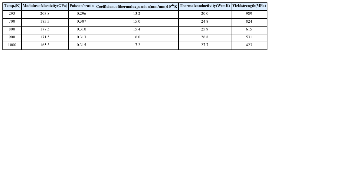 Table 2에는 해석에 적용된 Special Metals에서 제공한 Inconel 625의 온도별 비선형 물성값을 나타내었다.
