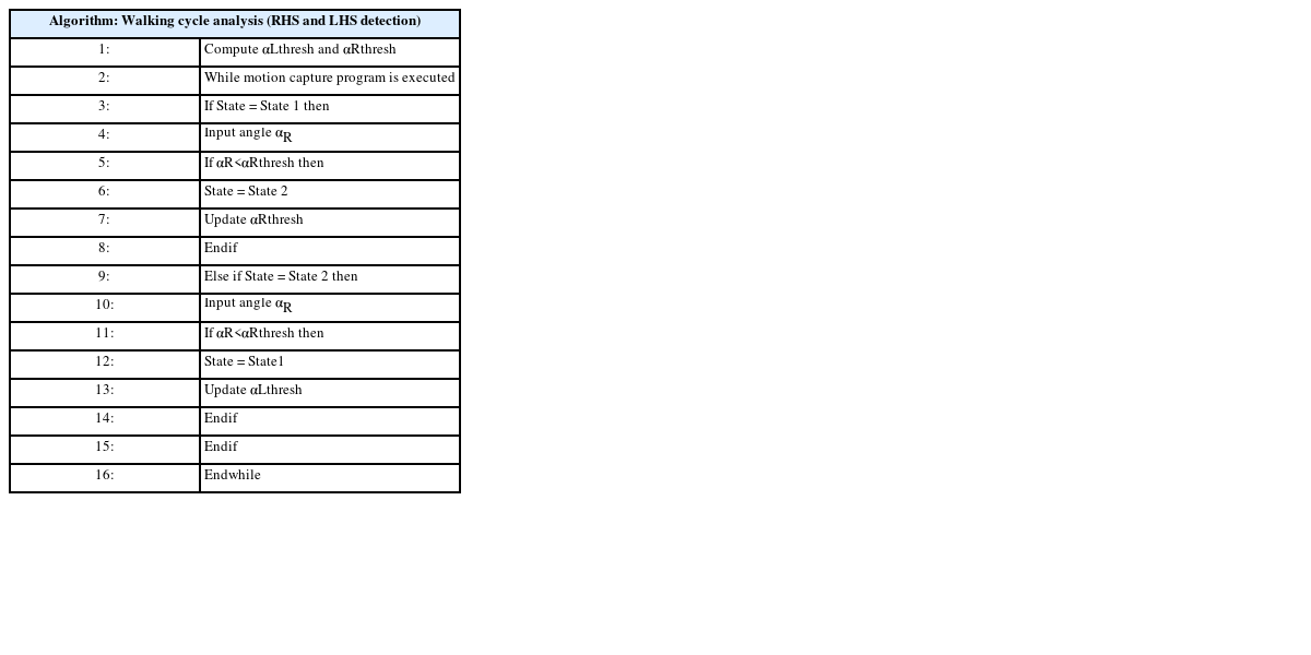 Fig. 2와 같이 State 1과 State 2로 구분하였다. State 1은 왼발 뒤꿈치가 지면에 닿는 순간인 Left Heel Strike (LHS)부터 오른발 뒤꿈치가 지면에 닿는 순간인 Right Heel Strike (RHS)까지로 정의되고 State 2는 RHS부터 LHS까지로 정의된다. 각 보행상태에서