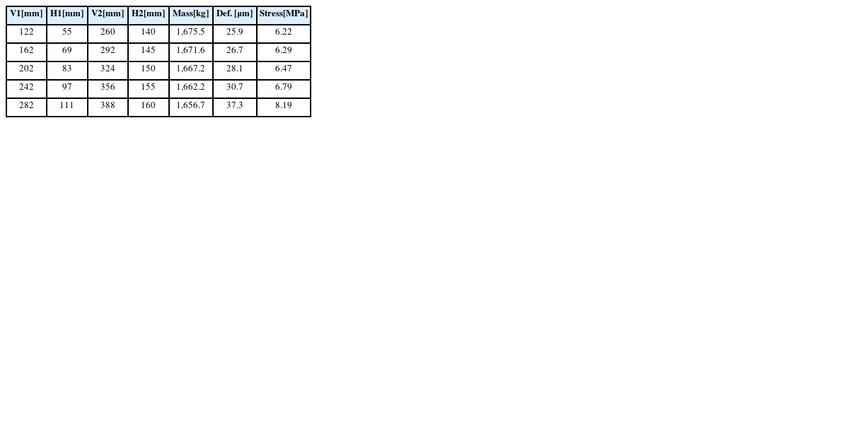 앞서 터렛 센터 구조물의 경량화를 위해 두 가지 형상개선 방안(Cases 1, 2)을 제시하여 해석을 진행하였다. 하지만 형상개선은 터렛 센터의 경량화에 중점을 두어 진행하였기 때문에 형상개선으로 인한 최대 변위와 응력을 증가가 발생하게 되었다. 따라서 형상개선의 방안 중, 구조물의 안정성을 유지하며 가장 많은 경량화가 이루어 질 수 있는 형상 최적화 작업을 수행하였다.