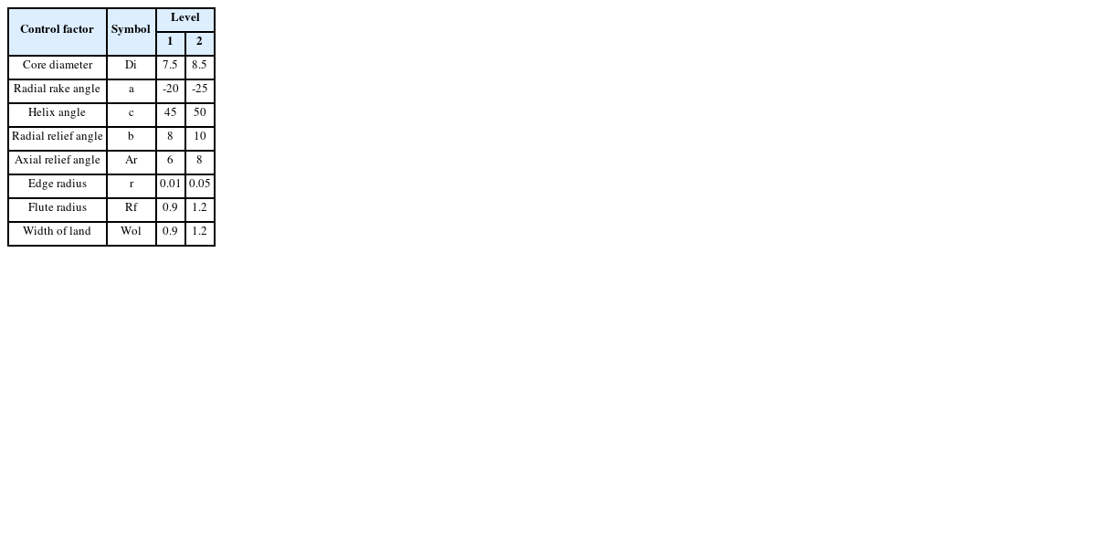 Table 1End mill shape value used for analysis
