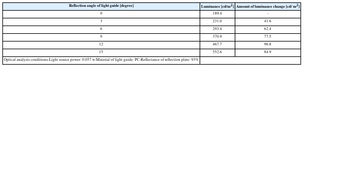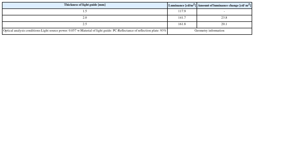 Table 3Luminance according to thickness of light guide