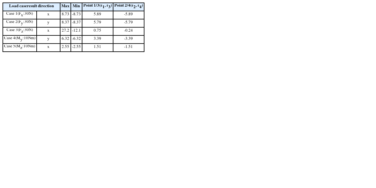 Fig. 7Strain results of F/T sensor frame under load conditions