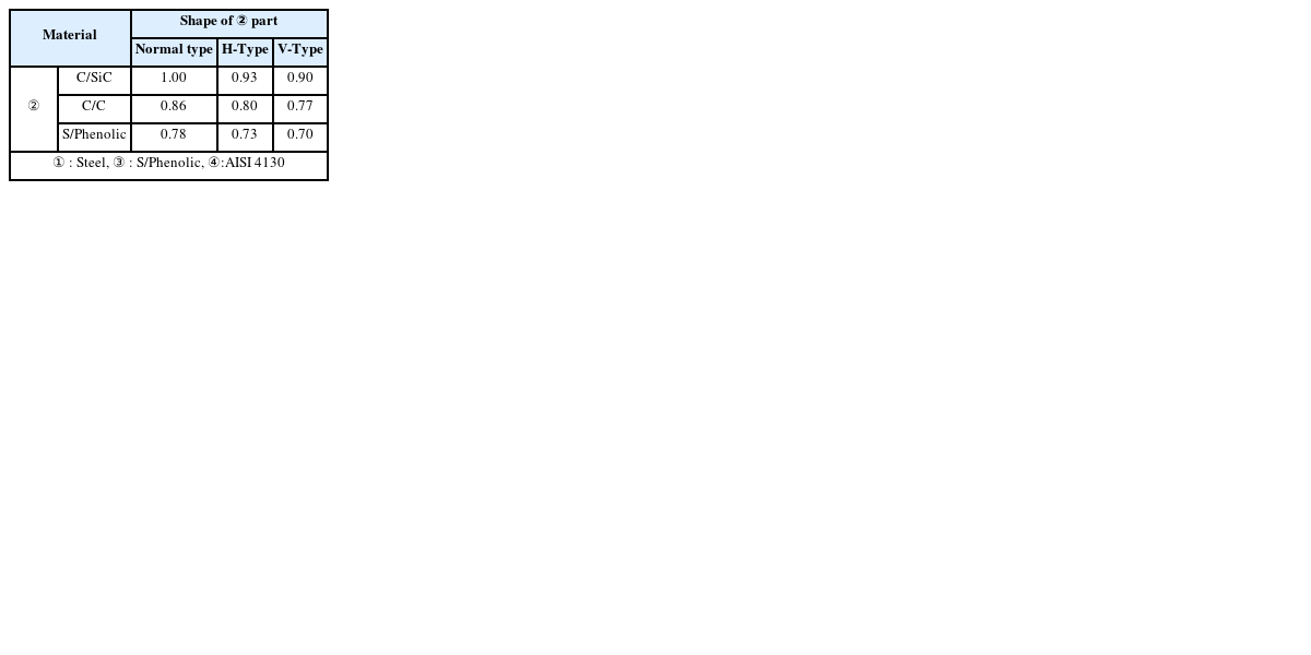 ① : Steel, ③ : S/Phenolic, ④:AISI 4130 |