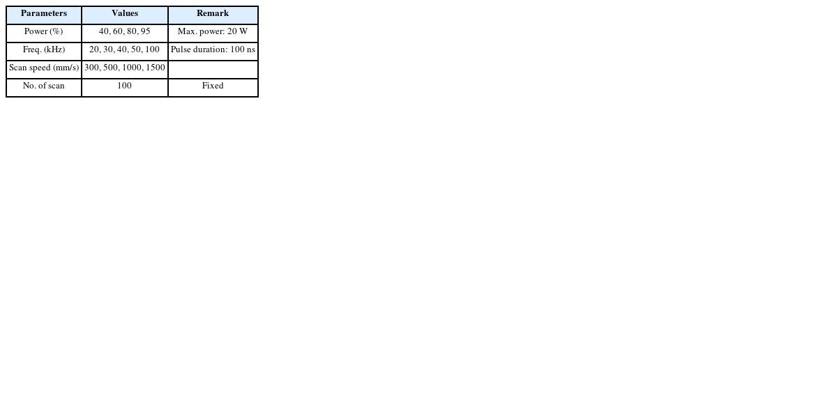 Table 1Laser micro cutting conditions