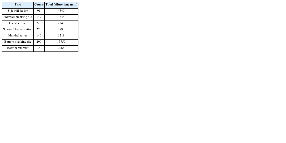 Table 1 Failure statistics of paper cup forming machine