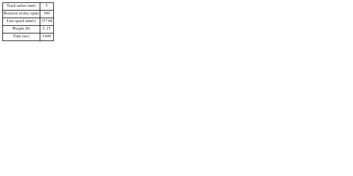 본 연구에서는 볼온디스크와 핀온디스크 실험을 위해 선속도는 157.08 mm/s로 고정되었으며 각각의 실험에서 시편에 가해지는 하중을 5 N, 15 N으로 변화시키며 1시간 동안의 마찰거동을 관찰하였다. 디스크의 회전속도는 일반적으로 사용되는 60-600 rpm의 디스크 회전 조건 중 300 rpm으로 선정하였으며 선속도는 트랙 반경을 고려하여 계산되었다. 구체적인 실험조건은