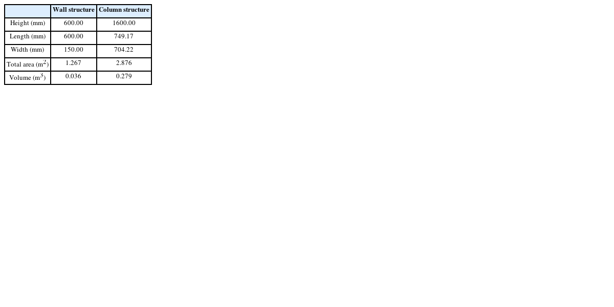 Table 1Geometry of the wall and column structure