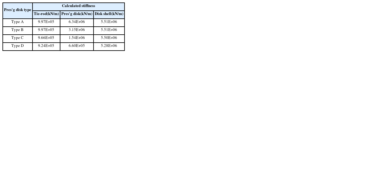 (2) 디스크 강성과 타이로드의 강성비가 통상 5 : 1 정도이므로 이를 고려하면 타이로드 강성과 압착디스크 강성의 비를 1 : 1.1-1.5 정도가 압착력을 최소화하는 범위로 추천된다.