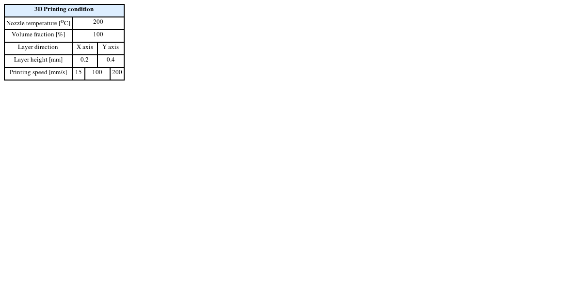 Table 23D Printing condition of tensile specimens