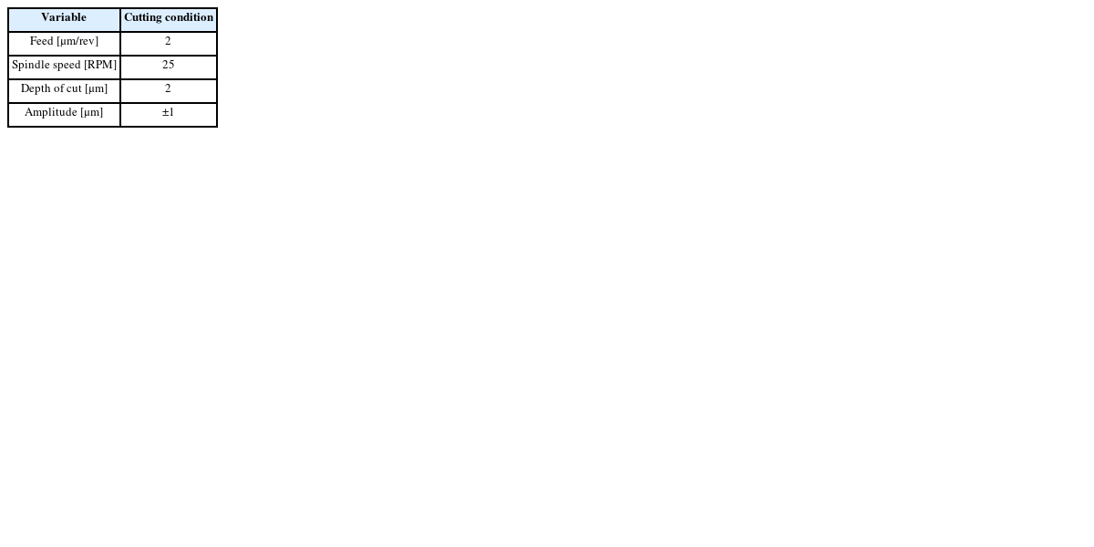 초음파 진동 절삭 가공은 고주파 전기에너지를 고주파 기계 진동 에너지로 변환하여 가공 공정에 적용하여, 기계적 효과에 의한 재료제거를 실현하는 가공 방식이다.10 최근 제조기술과 재료과학의 발달로 경도가 높고 마모 및 온도 저항성이 높은 첨단소재가 널리 사용되면서 항공우주 및 바이오, 광학 산업분야에서 주목을 받고 있다. 이러한 재료의 경우 과도한 절삭력, 높은 절삭온도, 심각한 공구 마모 및 표면 품질 저하 등의 단점이 있다. 가공 특성 및 공작물의 표면의 특성을 고려하여 다이아몬드 공구를 이용한 초음파 진동 보조 절삭 가공이 적용되며 활발하게 연구 개발이 되는 추세이다.10-12