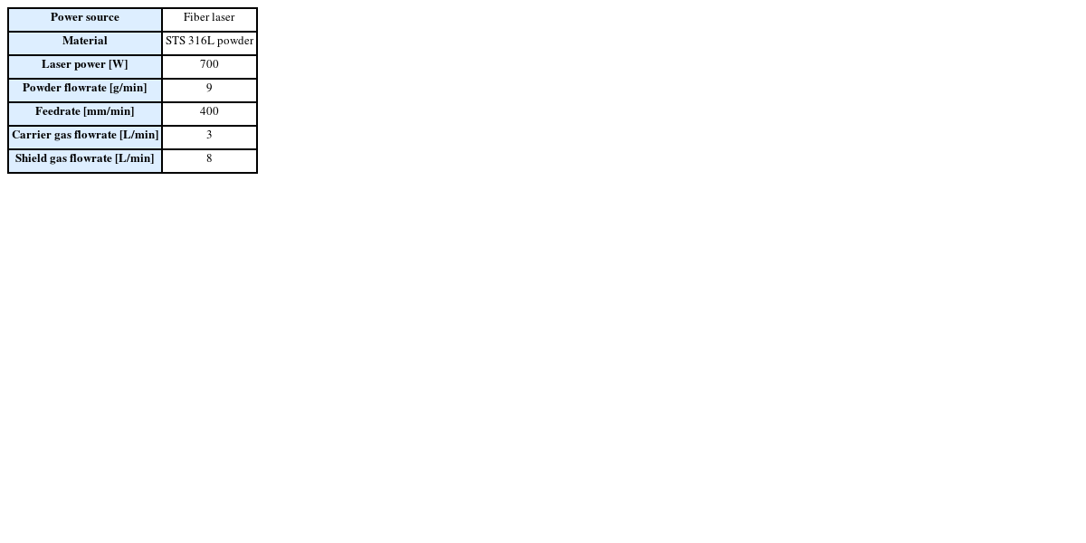 시편으로 사용할 재료는 오스테나이트계 스테인리스강인 STS 316L이다. 고인성, 가공 경화 현상 등의 성질로 대표적인 난삭재(難削材)로 알려져 있지만 높은 용접성과 적용 분야가 넓어 DED 공정에 많이 사용된다.