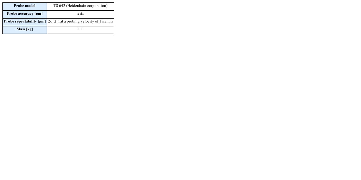 Table 2 Machining center specification