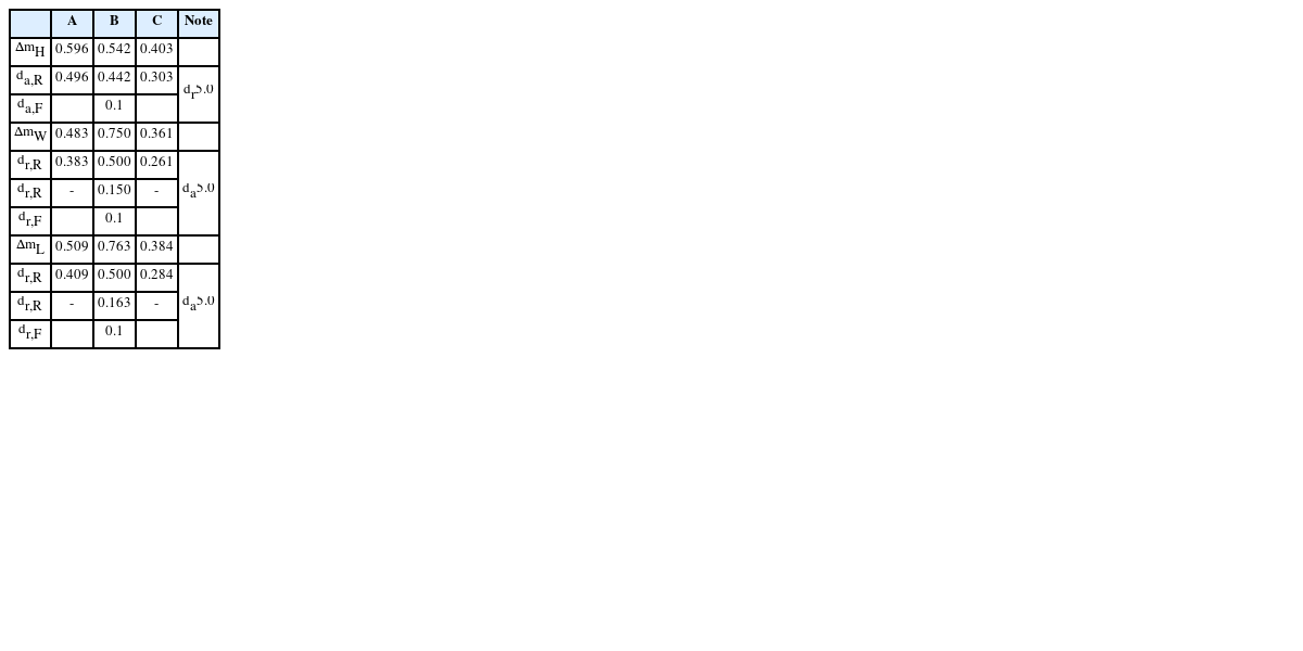 여기서, da,R, da,F는 정면 밀링의 황삭 및 정삭 절입 깊이을 의미하고, dr,R, dr,F는 측면 밀링의 황삭 및 정삭 절입 깊이다. a1-a6는 측정된 가공 잔량으로부터 황삭 여부를 결정하고 황삭 절입 깊이를 조정하는 변수로 다음과 같이 계산한다. a3-a6도 측면 밀링 황삭 절입 깊이에 따라서 유사하게 적용한다.