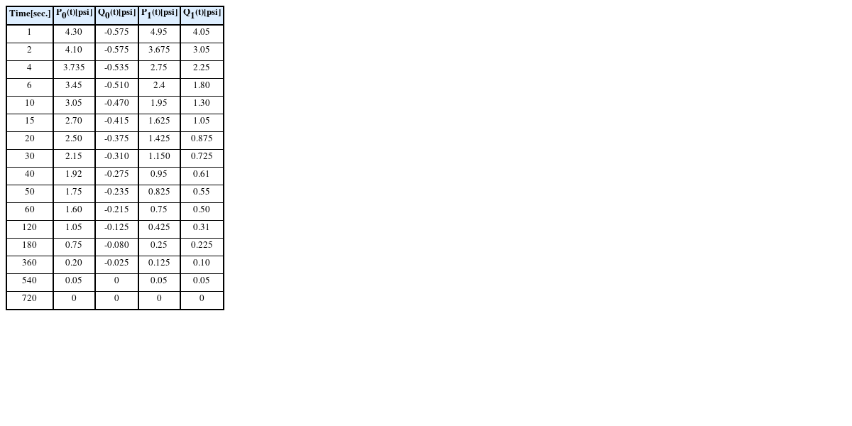 Lee1는 주어진 모멘트 M(t)과 내부 반지름에서의 회전 방향 변형각도 g(s)의 관계를 구하고자 하였으며, 시간 s < 0에서는 주어진 모멘트가 없으며, 회전 방향의 변형각도도 발생하지 않는 것으로 가정하였다. Lianis의 실험식을 이용하여 완성된 회전 방향 모드에 대한 Pipkin-Rogers Model인 식(2)를 이용하여, Ramp-to-Constant Rotational Angle Control Test를 수행하여 모의실험 데이터를 확보하였으며, 모멘트에 대한 외삽법(Moment Extrapolation Method)과 최소자승법(Least Squares Method)을 이용하여 회전 방향의 변형각도에 의존하는 모멘트완화함수(Rotational Angle Dependent Moment Relaxation Function)를 구하여 소수점 넷째 자리까지 완성한 회전 방향 모드에 대한 핍킨-라저스모델은 다음 식(4)와 같다.