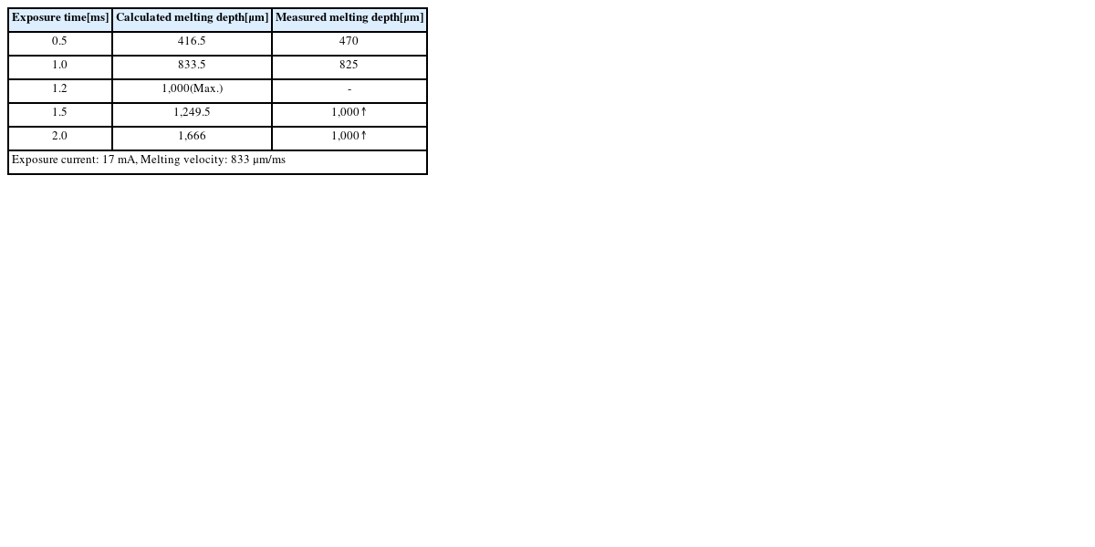 Exposure current: 17 mA, Melting velocity: 833 μm/ms |