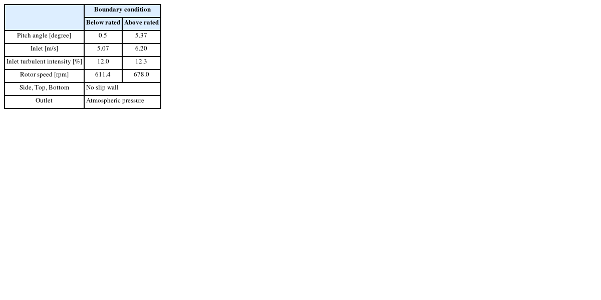 Table 2와 같으며 풍력터빈의 정격 풍속과 정격 회전속도를 기준으로 해석하였다. 시뮬레이션은 정상 상태(Steady-State) 해석으로 진행하였고 전체 유동 영역은