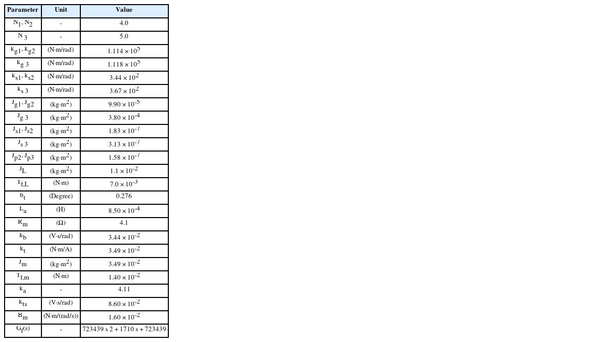 KEYWORDS: Servo system with three-stage reducer, Backlash ratio, Motor input voltage, Anti-resonance and resonance frequency