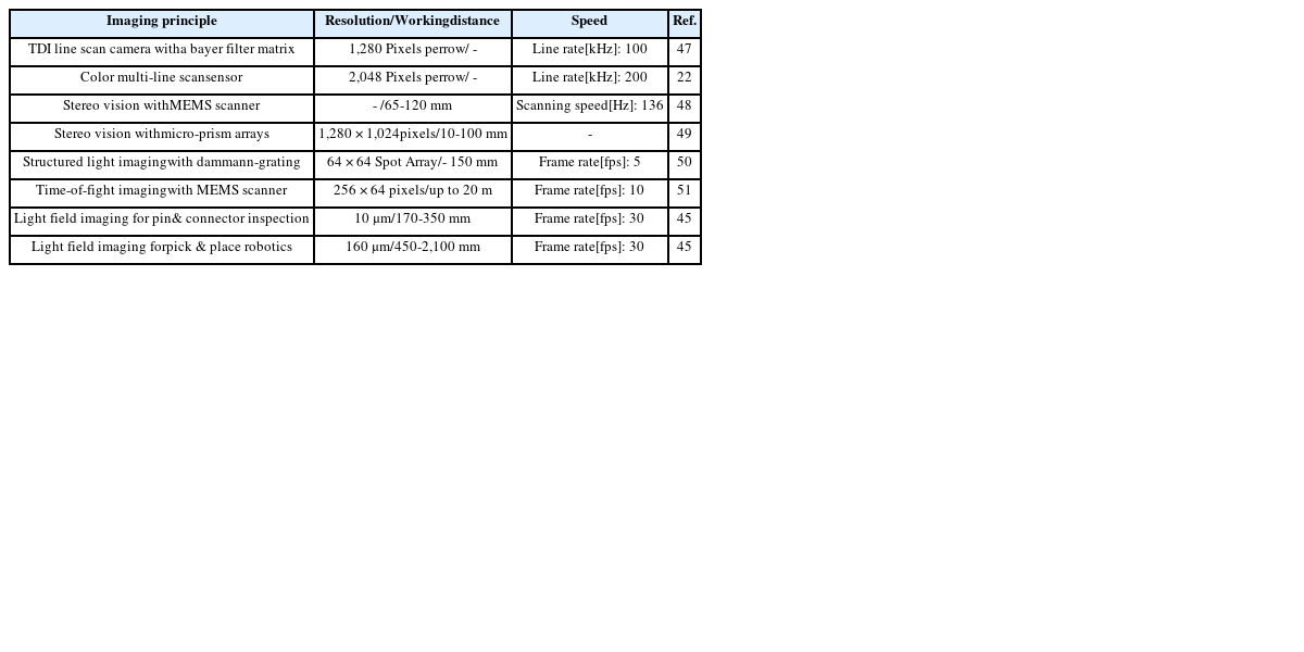 Table 1 Comparison of specifications according to the imaging principles of vision sensor