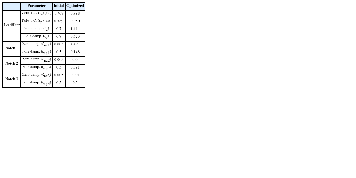 제어기는 위상선행 필터, 노치 필터, 저역 통과 필터로 구성되어 있다.