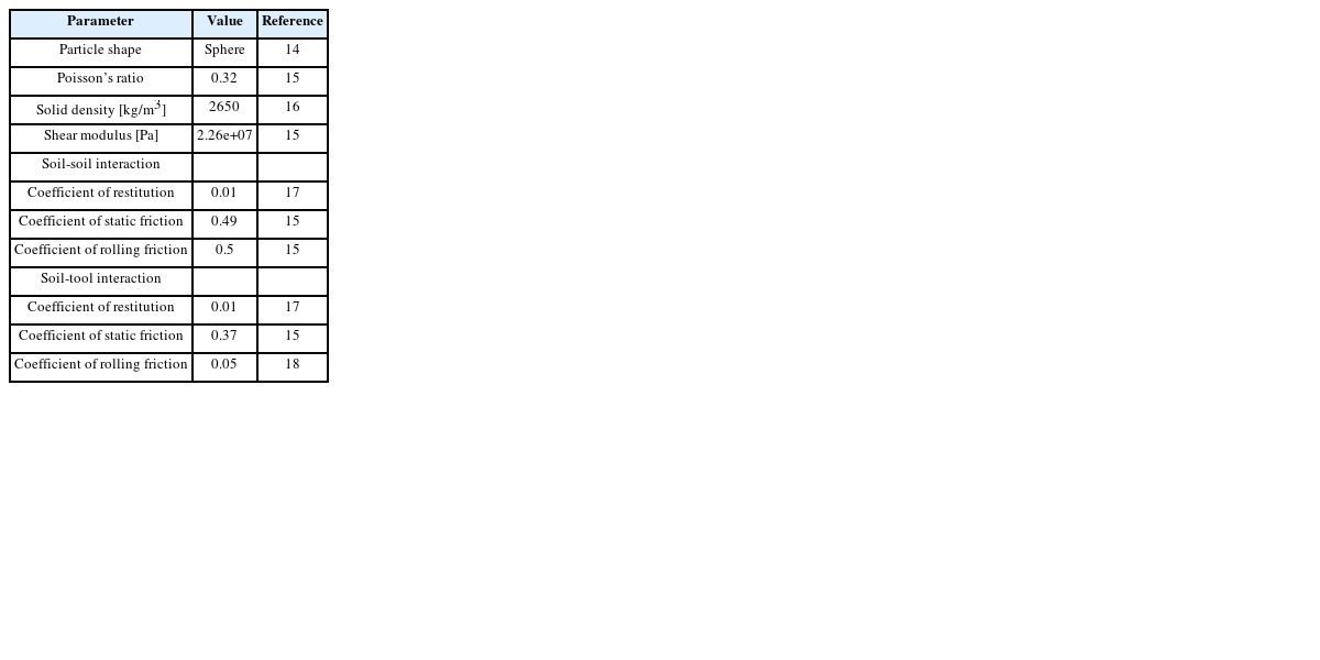 Table 2DEM parameters