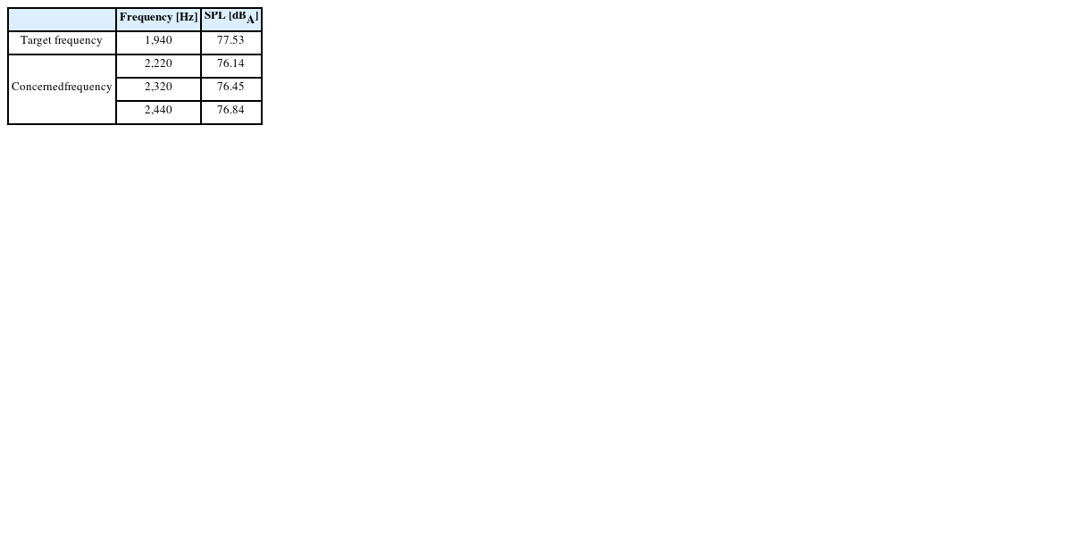 Table 2SPL data of the target frequency at 1,940 Hz and the concerned frequencies