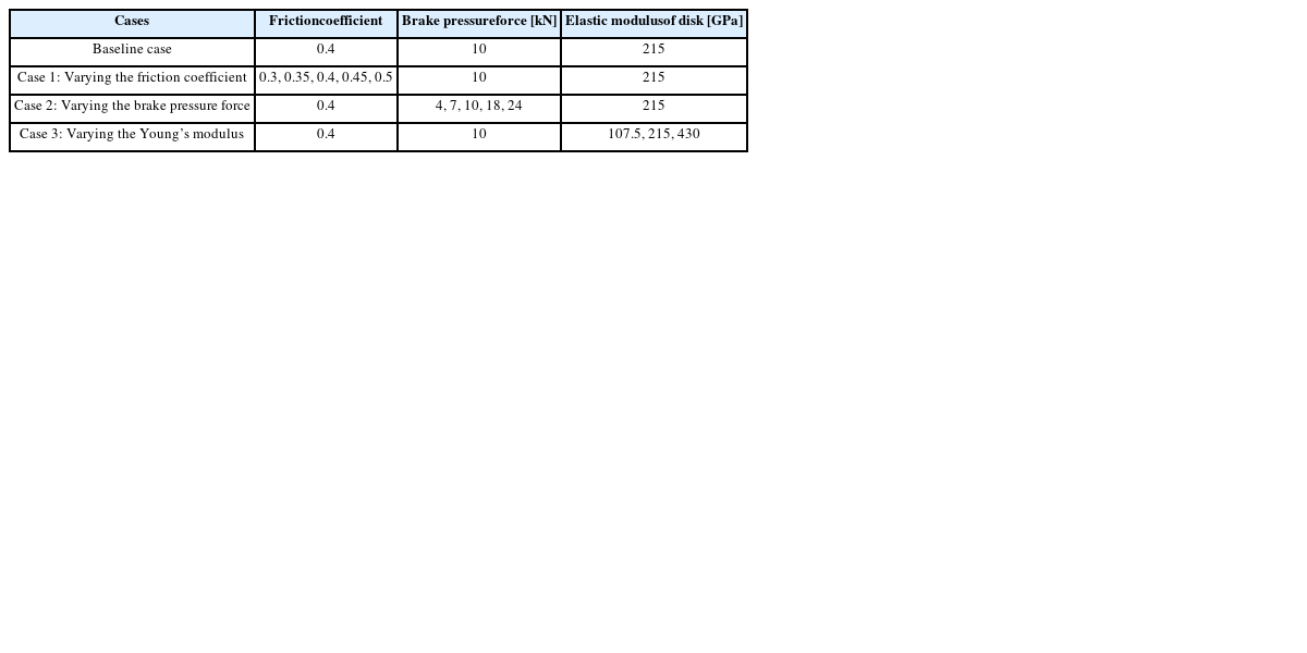 [9] modeled a brake system in high-speed railway equipped with a fixed type of pad using finite element method and analyzed the effect of friction coefficient between the fixed type of pad and the disk, and elastic modulus of backplate and friction material on the unstable mode. Shin