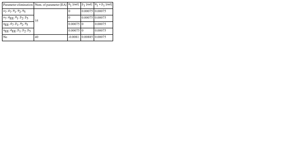 Parameter elimination Num. of parameter [EA] θ1 [rad] β1 [rad] θ1 + β1 [rad]