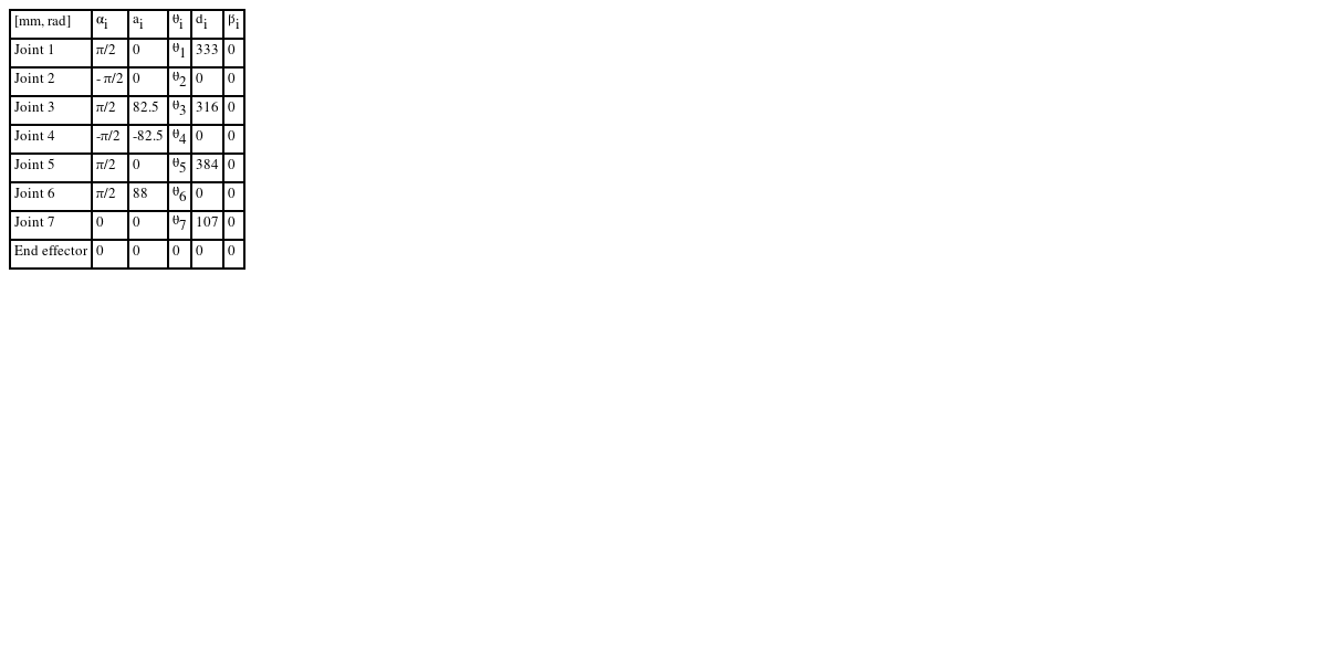 Table 2 DH parameters of Franka Emika Panda manipulator