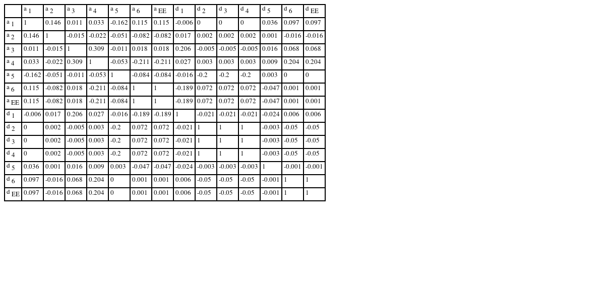 Table 6 Pearson correlation coefficients of Franka Emika Panda manipulator for angular parameters