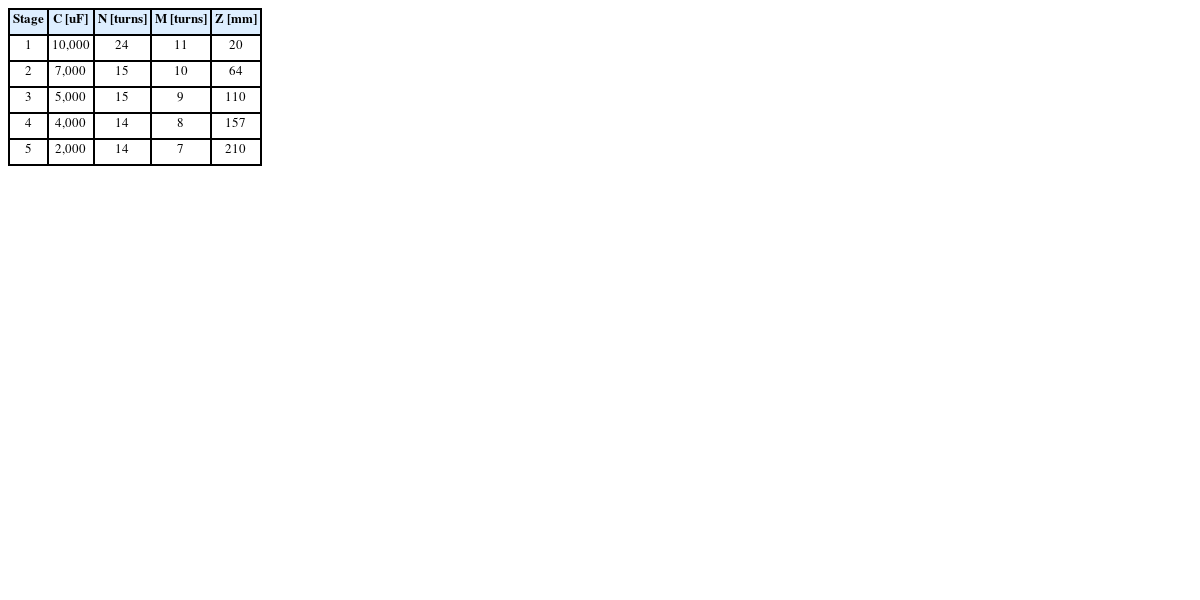 Table 9 Optimal values of design elements by stage of the five-stage coil gun