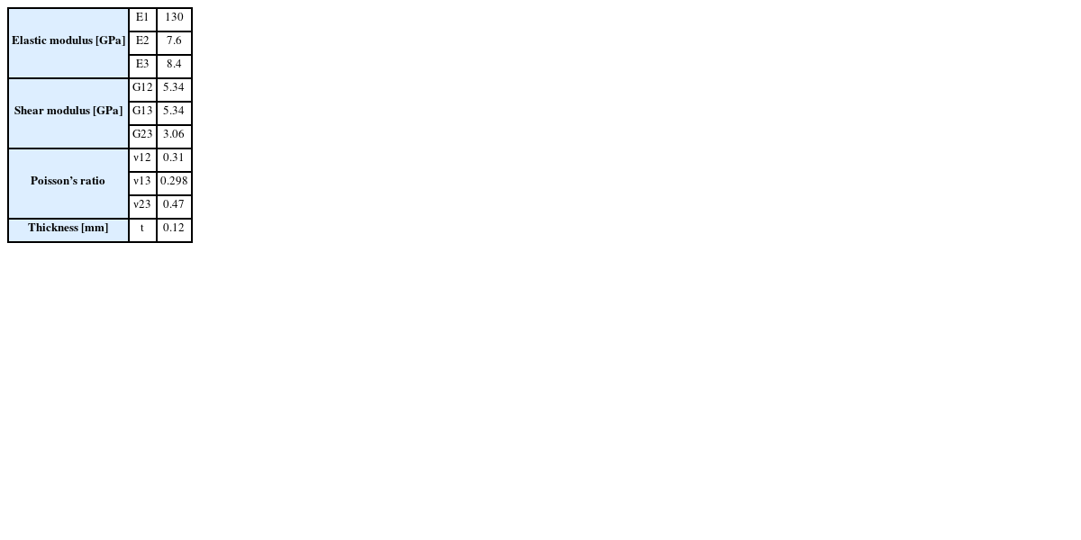 2와 같다. 최종적으로 제작된 탄소섬유 복합재 판의 경우 두께는 2±0.05mm이며, 탄소섬유 프리프레그 및 알루미늄의 물성은